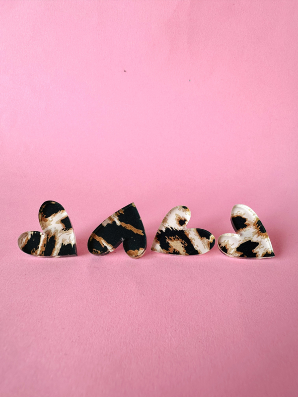 Luipaard Liefde!Oooohlala! Wow! Ik ben verliefd! Luipaardprintje! De hartjespin met een luipaard printje is zo mooi, elk hartje is anders, dus het is een verrassing welke je gaat ontvangen. Hoe gaaf om te combineren met een fluorroze mini hartje!