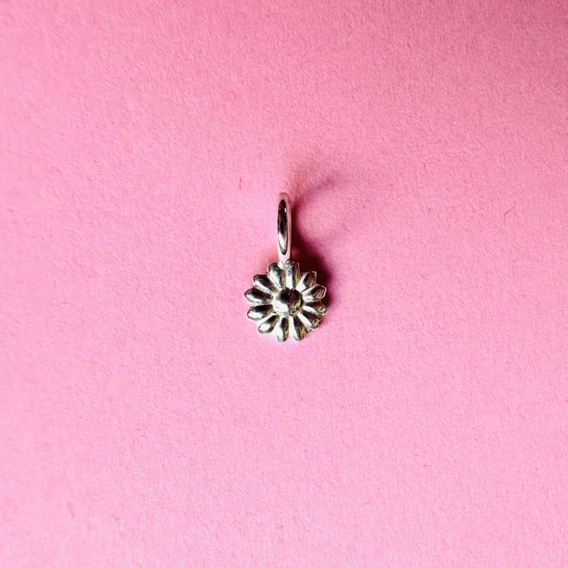 Daisy hangertjeSuperfijn zilveren (bloemetje is 6mm) bloemhangertje, onwijs mooi om te combineren met andere hangertjes.