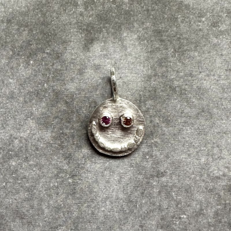 FunkySmily2.0Zo leuk deze gekke Funkysmily, elke keer weer anders. De oogjes in deze Funkysmily zijn een zalm saffiertje en een roze toermalijn. Wil je een andere kleurtje, dat kan! Ik maak 'm graar voor je. De smileys zijn ongeveer 1 cm