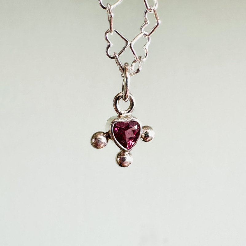 Supervrolijk hangertje met een rize granaat, 4mm gezet in een zilveren zetkastje.
